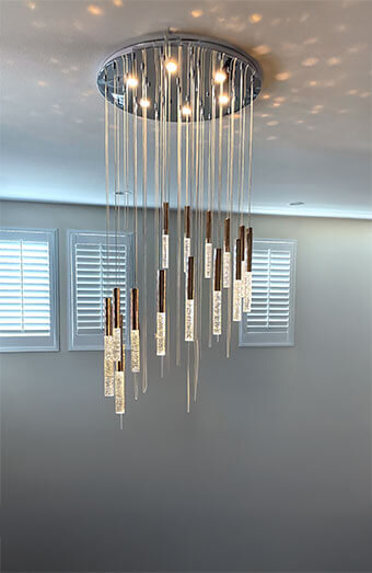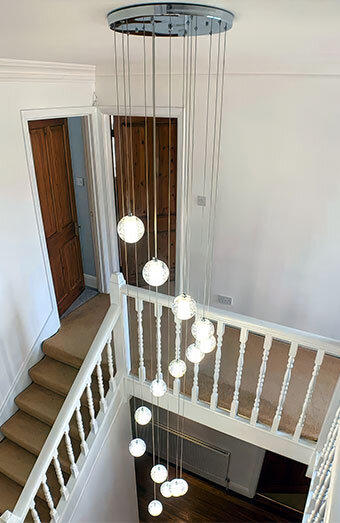 Professional installation of all lighting types including pendant lights, downlights, oyster lights, and chandeliers for homes and commercial spaces.
